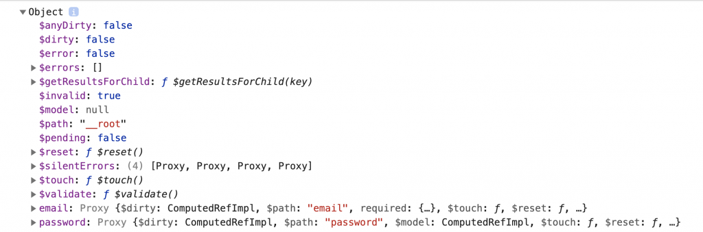 And after that runs, if any fail their validation, our Vuelidate object will have an error.