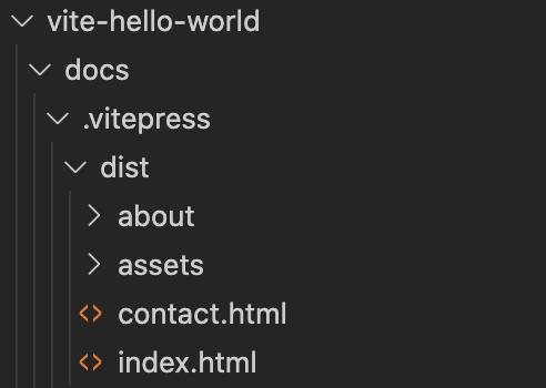 The build output will by default go to /docs/.vuepress/dist. The dist folder for our example looks like this.