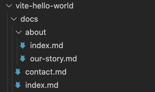 Let’s create a few pages and subdirectories in our project – our docs/directory should now look like this.