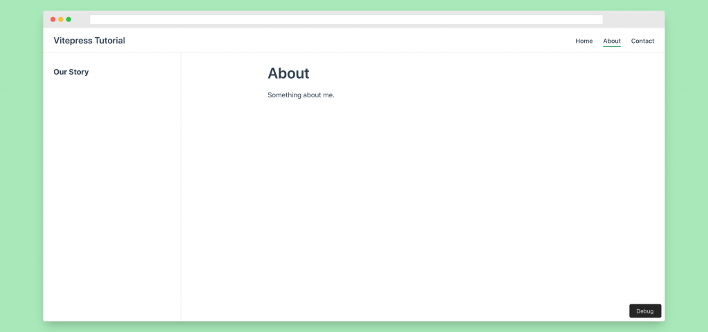 sidebar: [{ text: 'Our Story', link: '/about/our-story' }],
