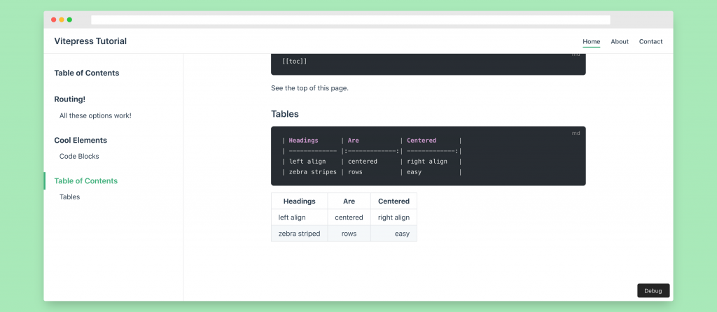 Adding a table of contents can be another great way to give your Vue static site easy navigation